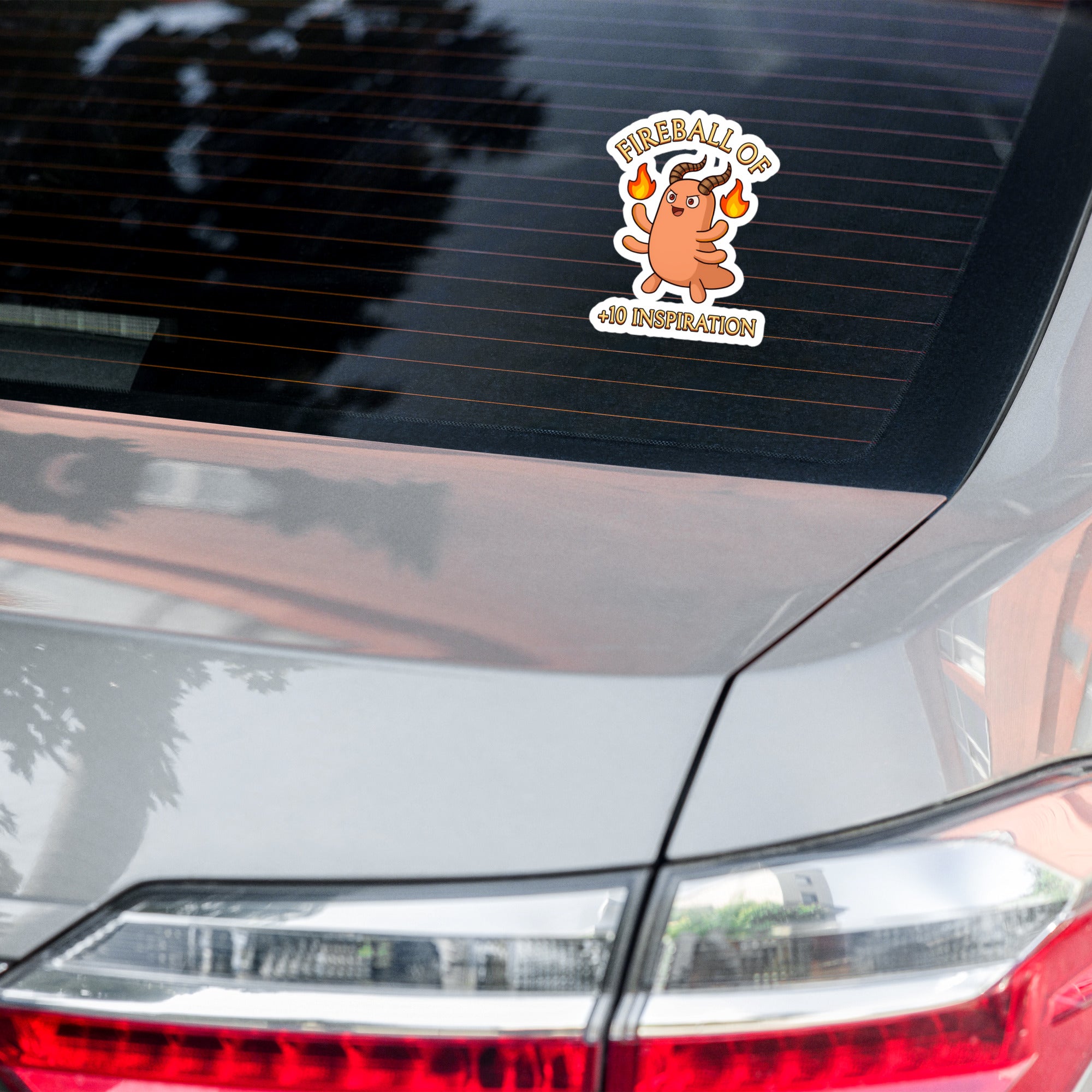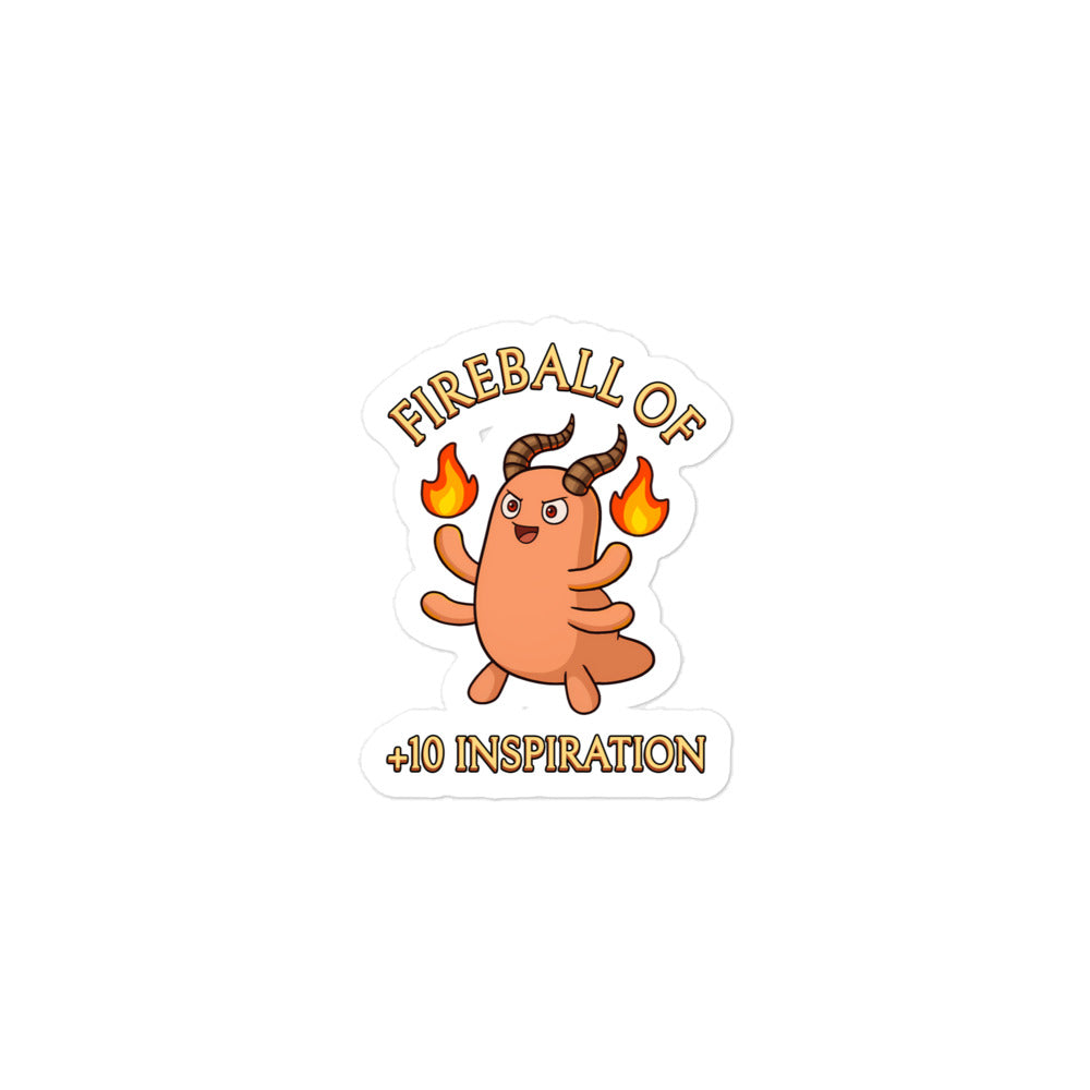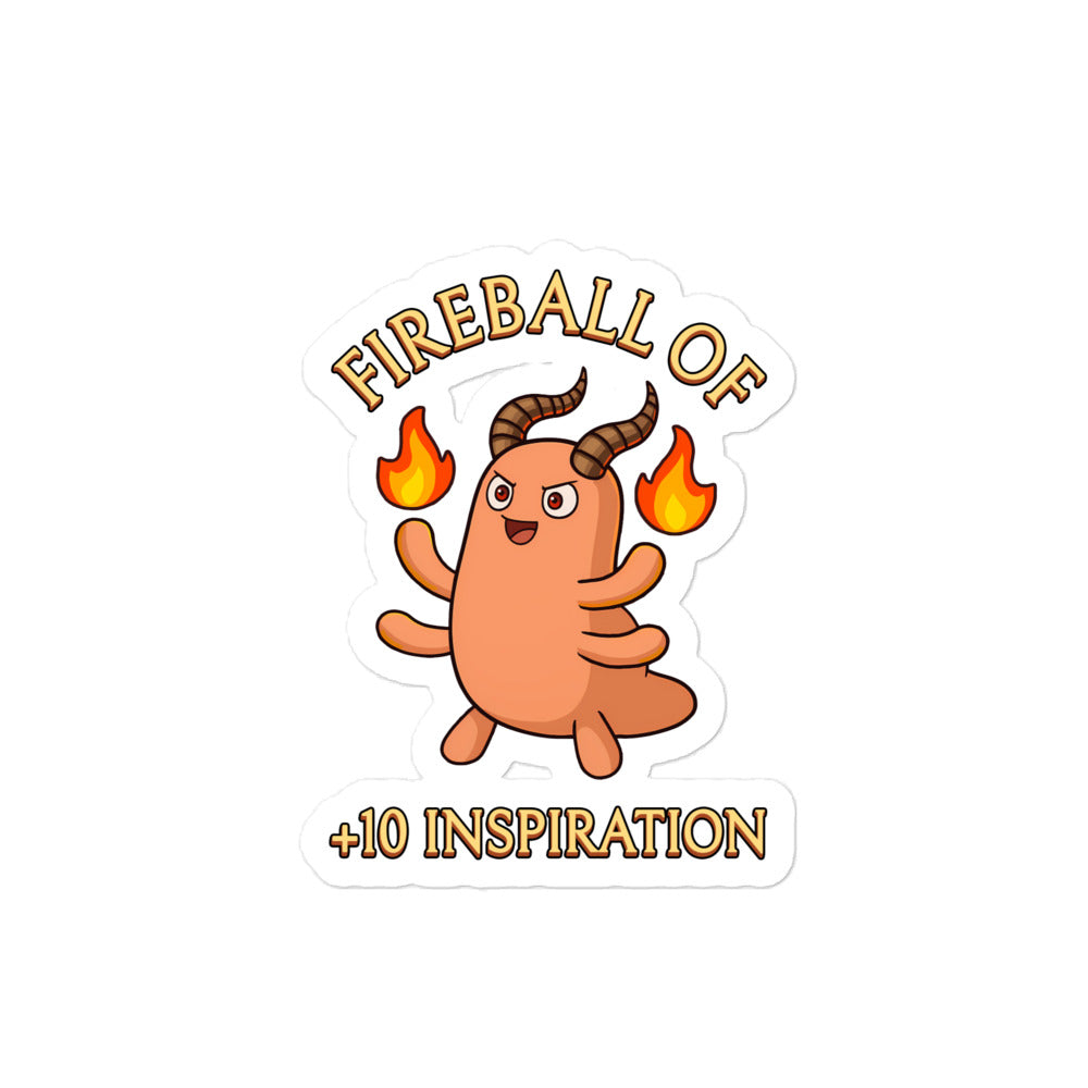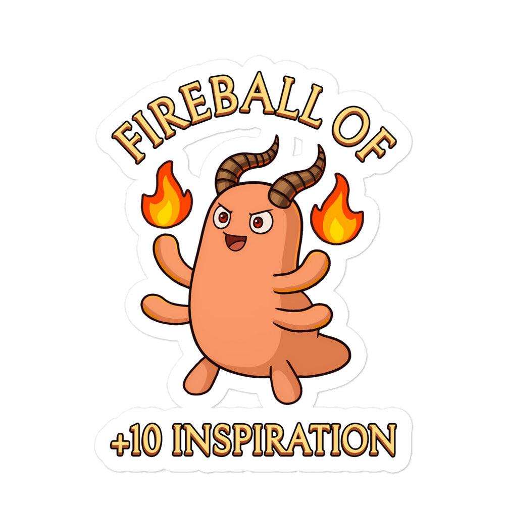 Feel the burn of pure creative energy! This vibrant "Fireball of +10 Inspiration" vinyl sticker features Ember, our new Udan, conjuring twin fireballs to fuel your imagination. Decorate your laptop, notebook, or workspace and keep your inspiration burning all day long!