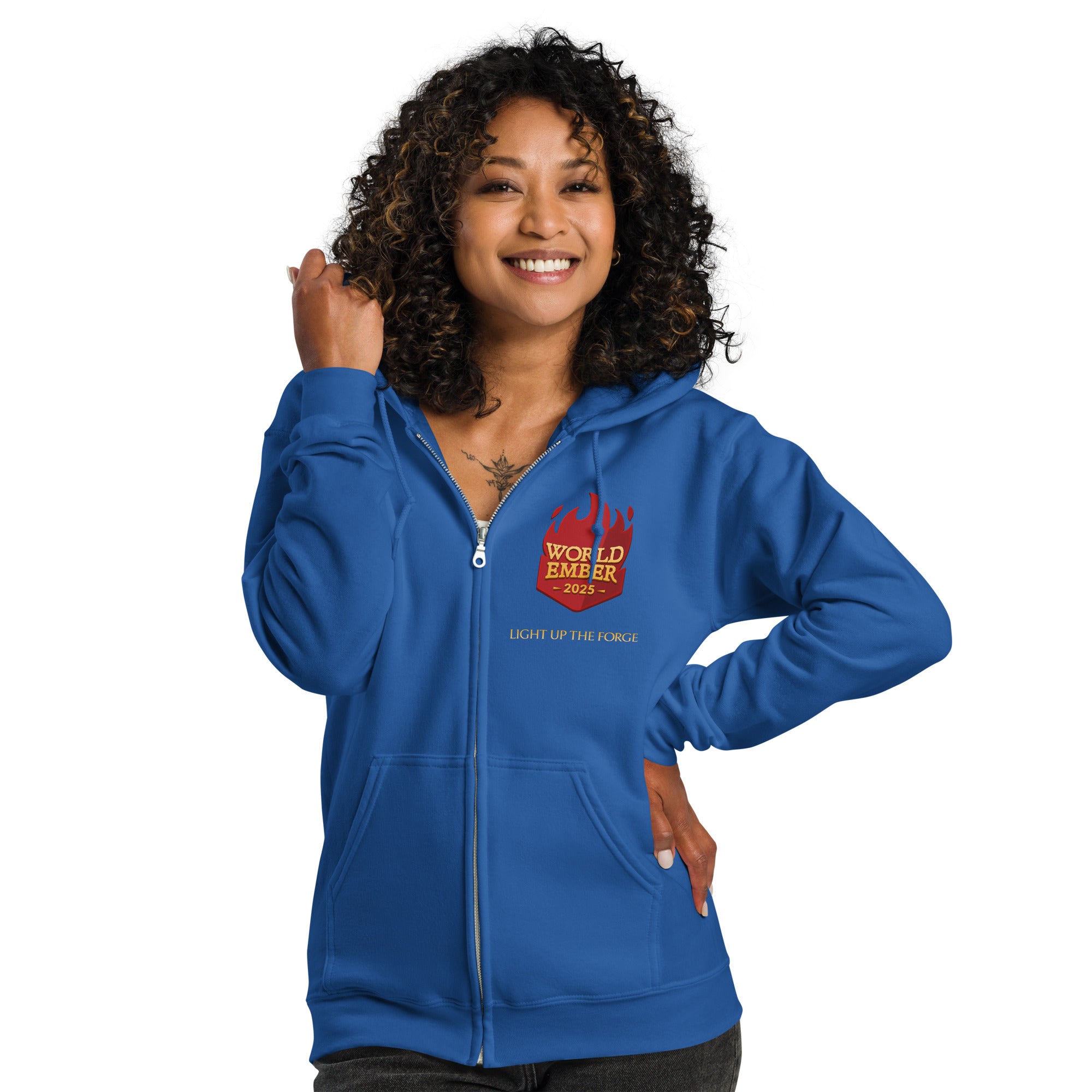 Flex your big, beautiful wordcount in this official WorldEmber 2025 Zip hoodie! Made from soft fleece with a sturdy metal zipper and front pockets, this hoodie is built for long writing sessions and stellar wordcounts - just like you.
