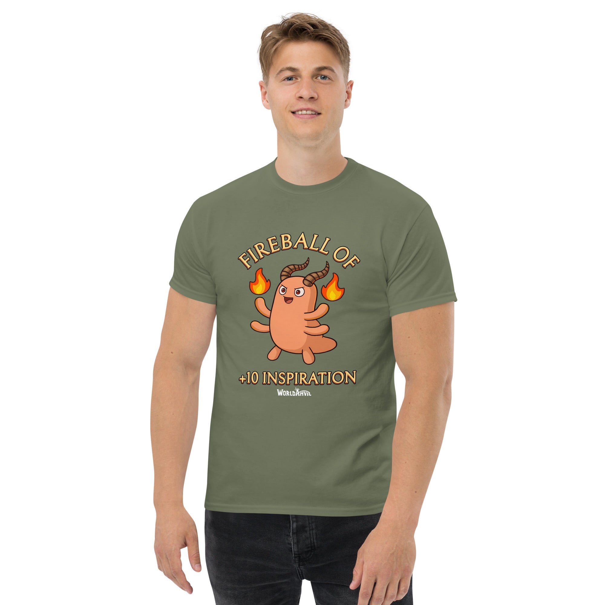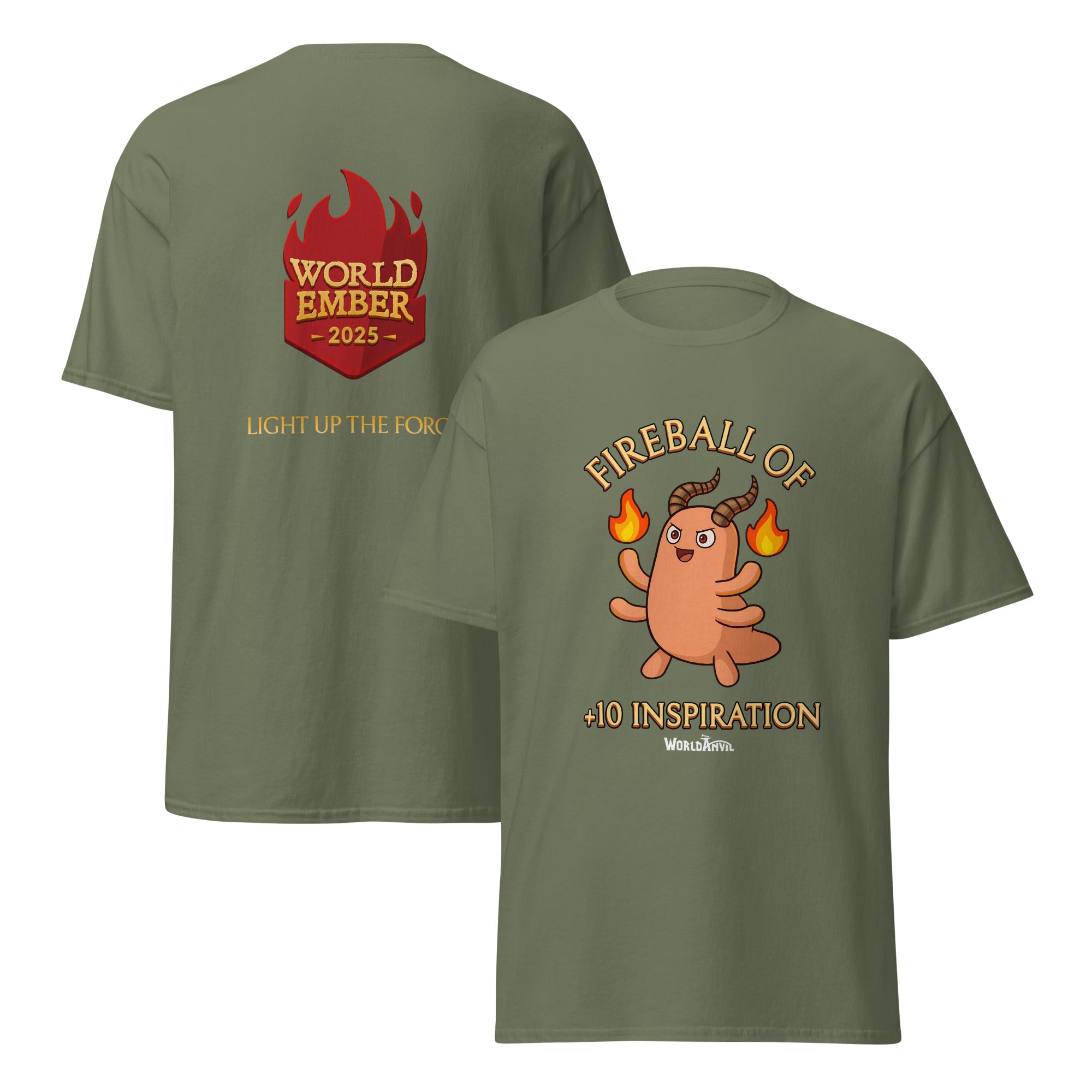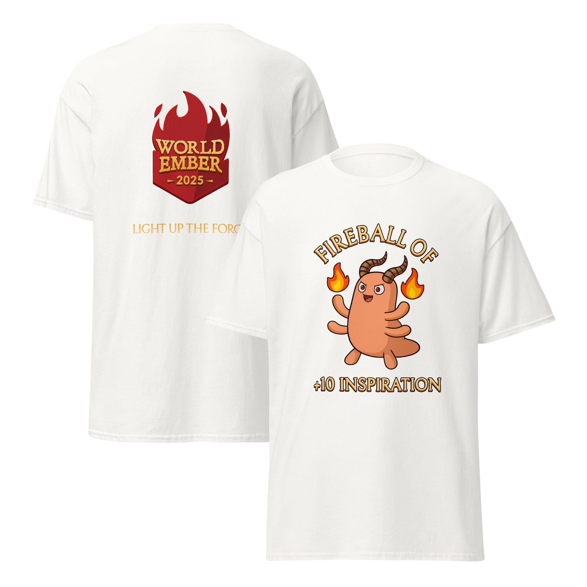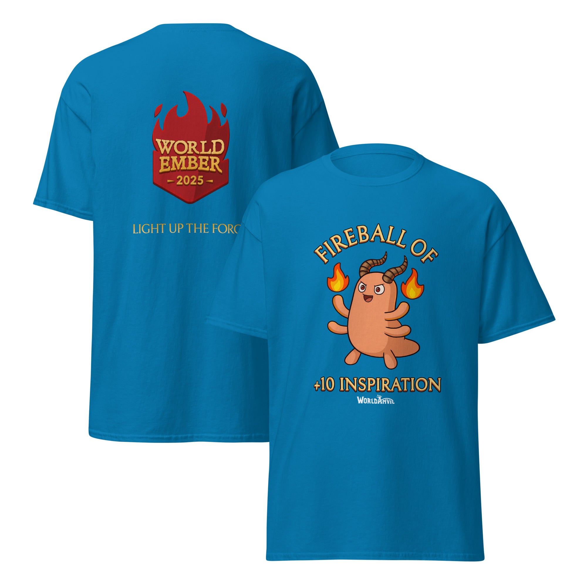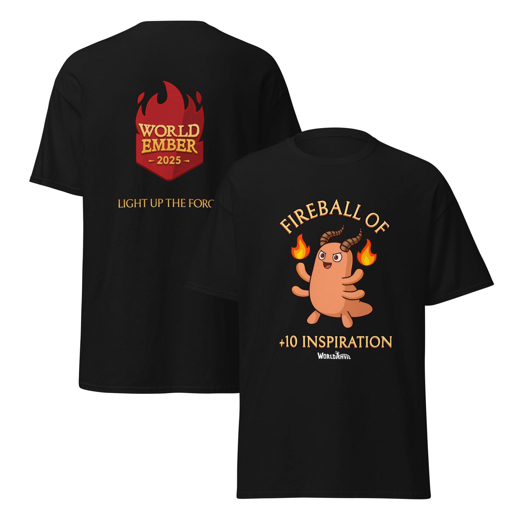 Unlock +10 Inspiration every time you don your WorldEmber 2025 T-Shirt of +10 Inspiration! Made from soft, breathable cotton and designed for everyday comfort, this classic unisex tee is perfect for writing sprints, gaming nights, conventions, or simply showing off your worldbuilding pride in the wild!