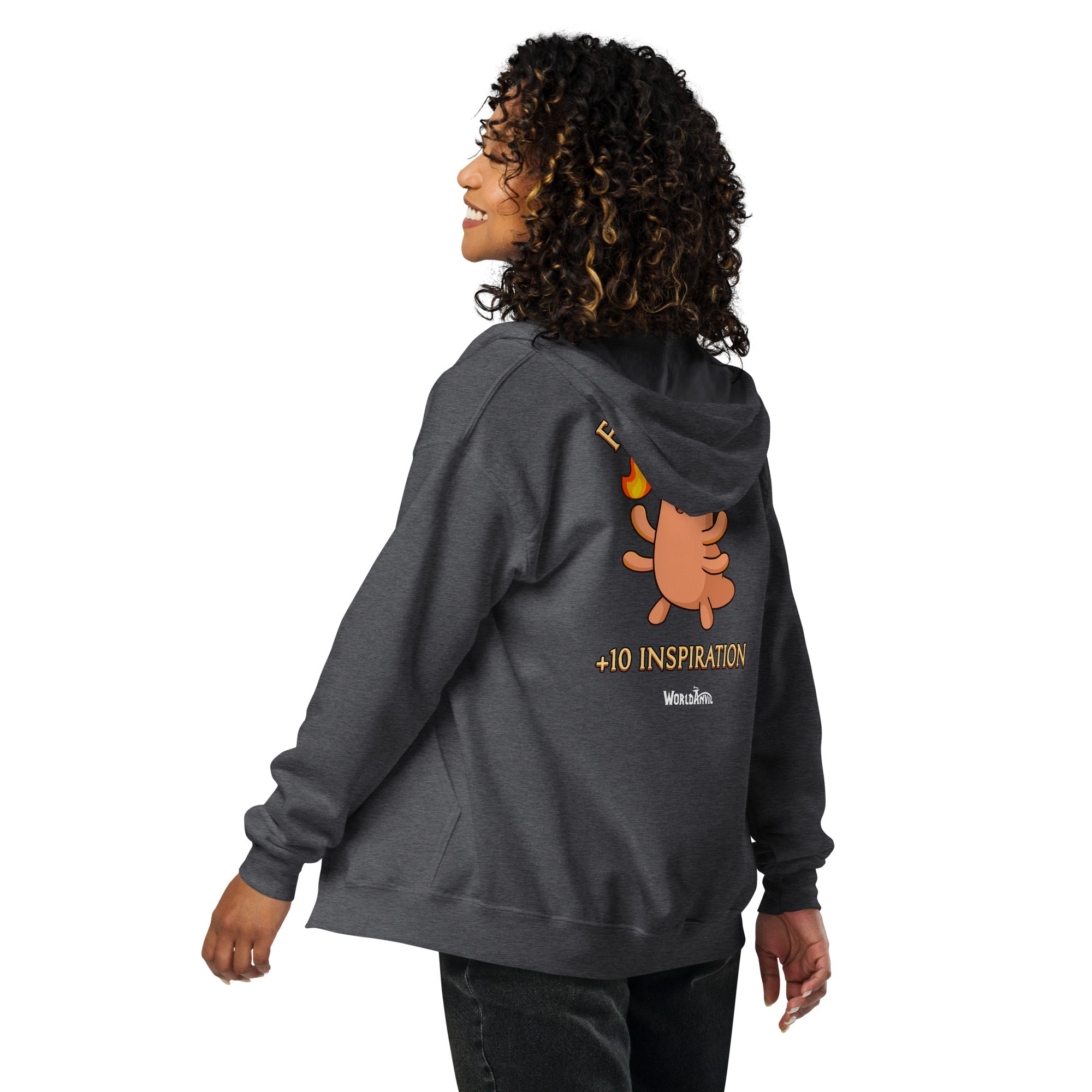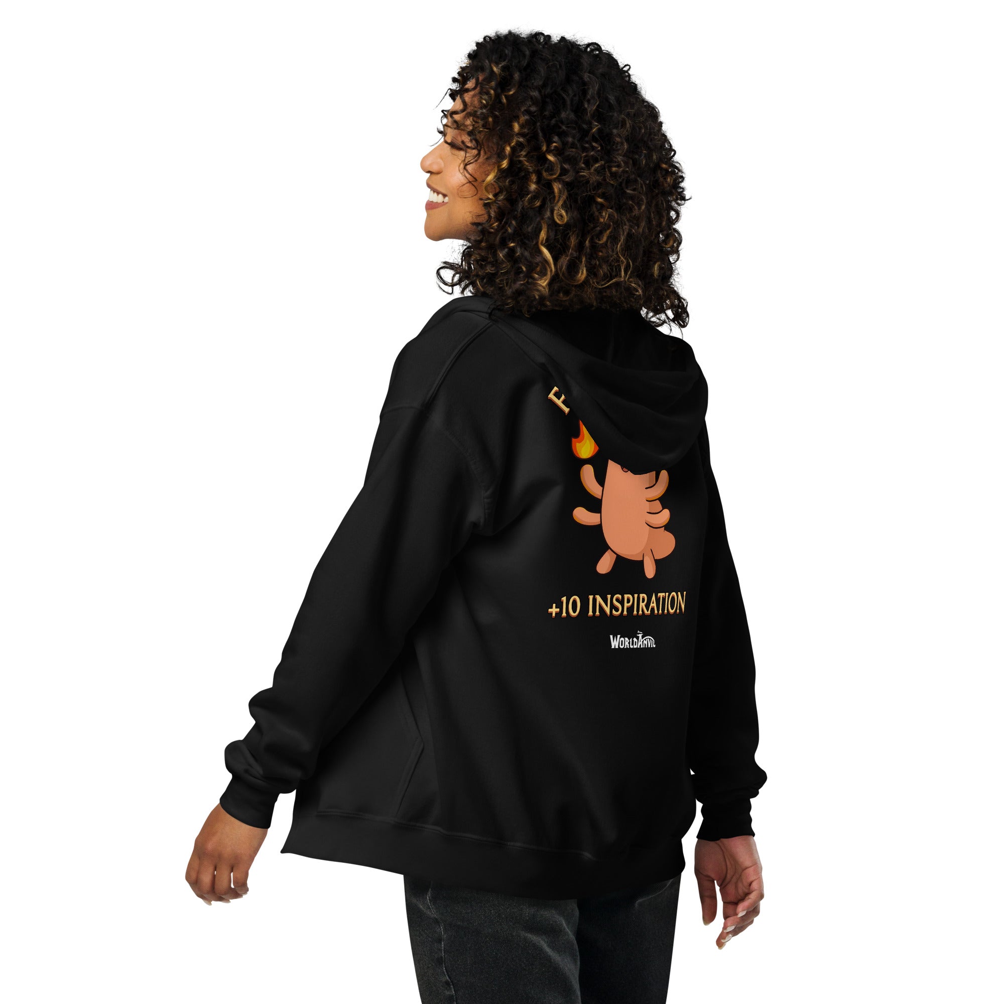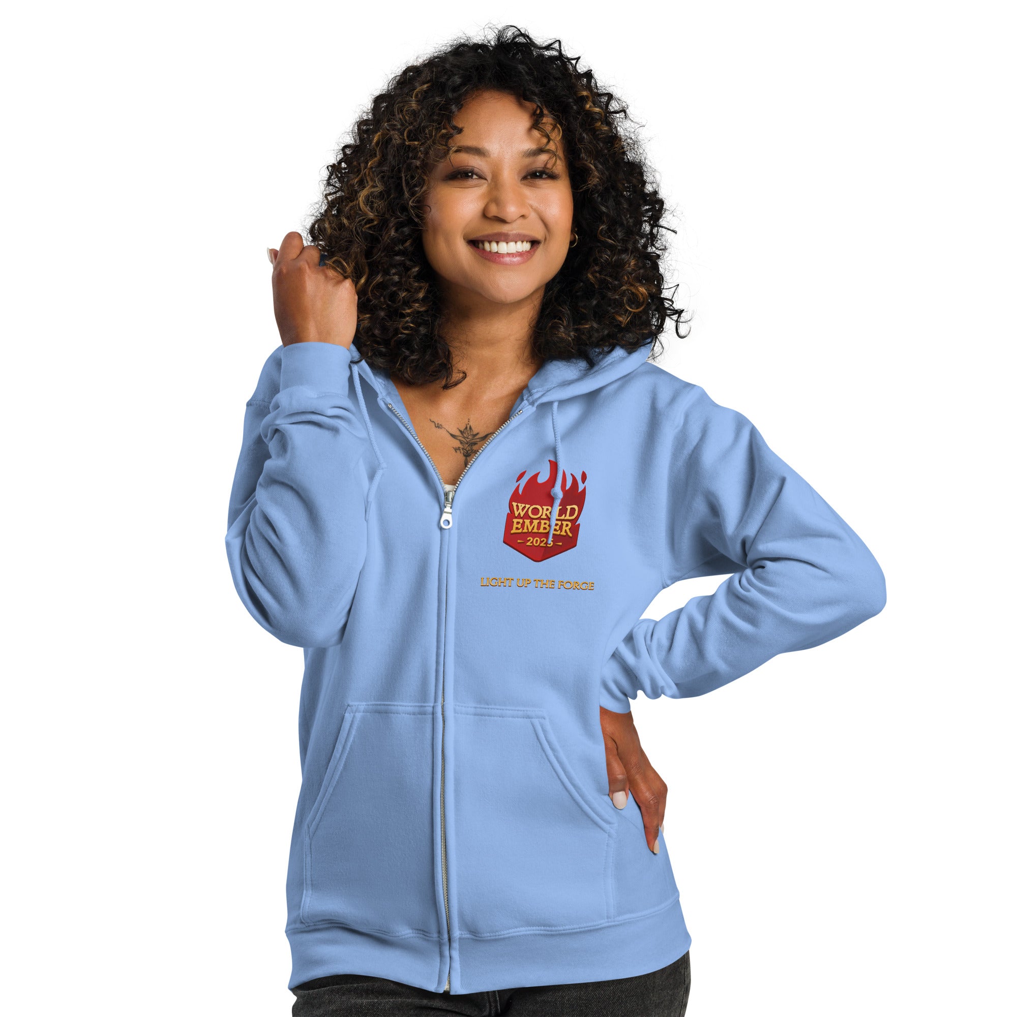 Light up your forge—and your wardrobe—with the official WorldEmber 2025 Zip Hoodie of +10 Inspiration!